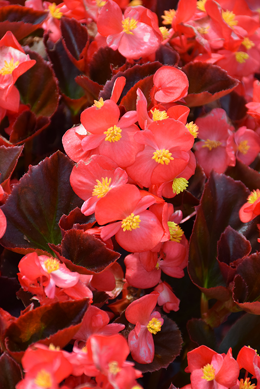 From sun to shade, this mounded selection is ideal for patio containers, hanging baskets and garden landscapes; beautiful vibrant blooms stand out against dark green foliage with bronzy-copper overtones; continuous, long blooming