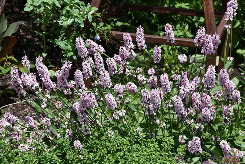Pink Cotton Candy Betony will grow to be about 8 inches tall at maturity extending to 24 inches tall with the flowers, with a spread of 20 inches. When grown in masses or used as a bedding plant, individual plants should be spaced approximately 15 inches apart. It grows at a medium rate, and under ideal conditions can be expected to live for approximately 5 years. As an herbaceous perennial, this plant will usually die back to the crown each winter, and will regrow from the base each spring. Be careful not to disturb the crown in late winter when it may not be readily seen!