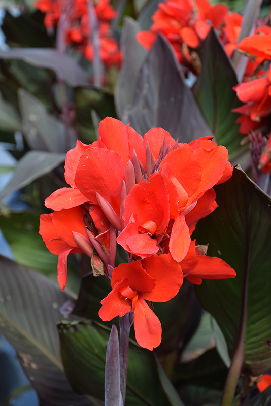 Cannova® Bronze Scarlet Canna is a fine choice for the garden, but it is also a good selection for planting in outdoor pots and containers. With its upright habit of growth, it is best suited for use as a 'thriller' in the 'spiller-thriller-filler' container combination; plant it near the center of the pot, surrounded by smaller plants and those that spill over the edges. It is even sizeable enough that it can be grown alone in a suitable container. Note that when growing plants in outdoor containers and baskets, they may require more frequent waterings than they would in the yard or garden. Be aware that in our climate, most plants cannot be expected to survive the winter if left in containers outdoors, and this plant is no exception. Contact our experts for more information on how to protect it over the winter months.