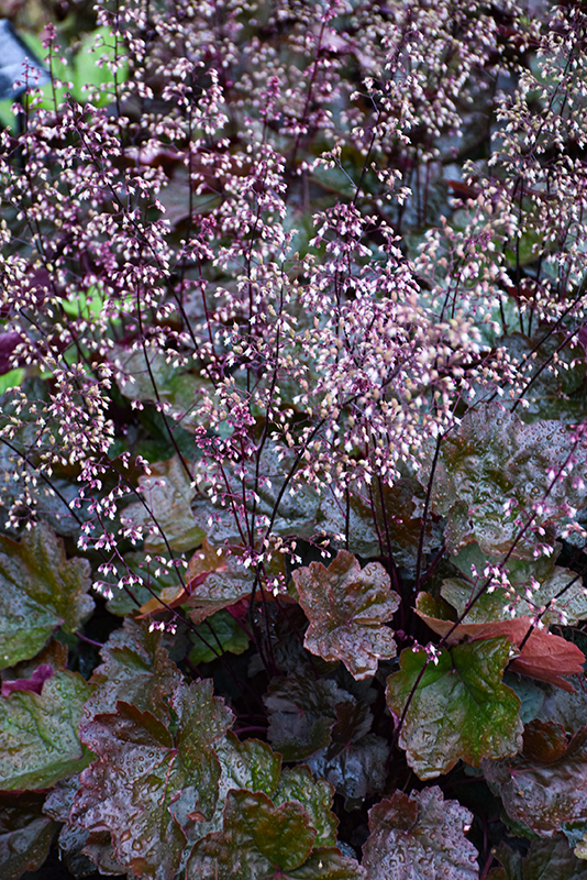 Carnival Black Olive Coral Bells is a dense herbaceous evergreen perennial with tall flower stalks held atop a low mound of foliage. Its medium texture blends into the garden, but can always be balanced by a couple of finer or coarser plants for an effective composition.