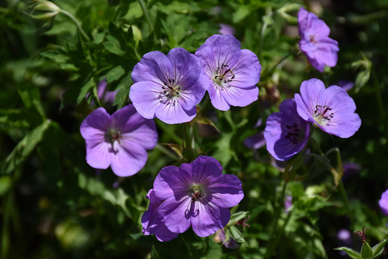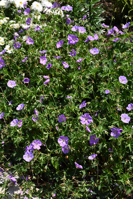 Azure Rush Cranesbill will grow to be about 16 inches tall at maturity, with a spread of 24 inches. When grown in masses or used as a bedding plant, individual plants should be spaced approximately 20 inches apart. Its foliage tends to remain dense right to the ground, not requiring facer plants in front. It grows at a medium rate, and under ideal conditions can be expected to live for approximately 10 years. As an herbaceous perennial, this plant will usually die back to the crown each winter, and will regrow from the base each spring. Be careful not to disturb the crown in late winter when it may not be readily seen!