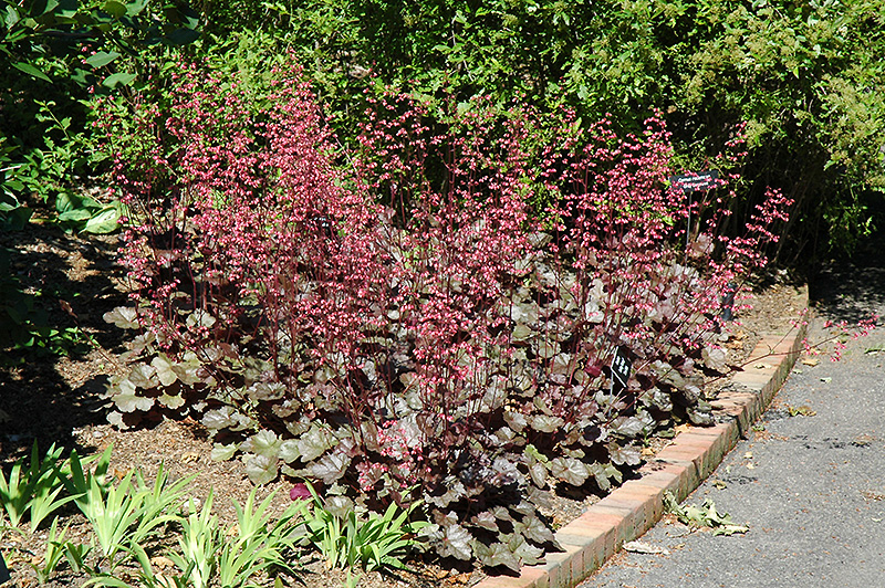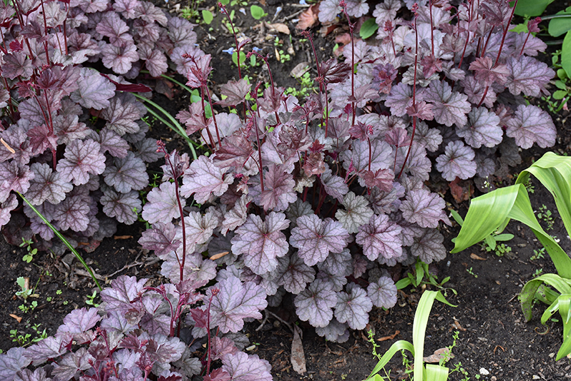 Swirling Fantasy Coral Bells will grow to be about 8 inches tall at maturity extending to 18 inches tall with the flowers, with a spread of 12 inches. When grown in masses or used as a bedding plant, individual plants should be spaced approximately 10 inches apart. Its foliage tends to remain low and dense right to the ground. It grows at a medium rate, and under ideal conditions can be expected to live for approximately 10 years. As an evegreen perennial, this plant will typically keep its form and foliage year-round.