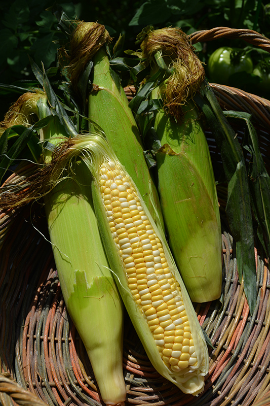 A beautiful variety that produces bi-colored kernels on 8 inch long cobs; plant in gardens in rows of 4 or as natural screening; sweet flavor profile with tender kernels, great for salsas, salads or eating right off the cob