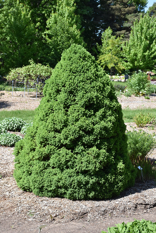 Possibly the most popular dwarf evergreen ever, looks like a small, fuzzy bright green Christmas tree, ideal as a garden accent; incredibly dense needles are very sensitive to winter burn and may need winter protection in exposed locations