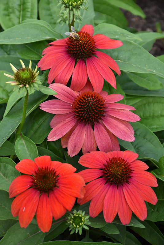 Artisan™ Red Ombre Coneflower will grow to be about 18 inches tall at maturity extending to 30 inches tall with the flowers, with a spread of 24 inches. When grown in masses or used as a bedding plant, individual plants should be spaced approximately 18 inches apart. Its foliage tends to remain dense right to the ground, not requiring facer plants in front. It grows at a medium rate, and under ideal conditions can be expected to live for approximately 10 years. As an herbaceous perennial, this plant will usually die back to the crown each winter, and will regrow from the base each spring. Be careful not to disturb the crown in late winter when it may not be readily seen!