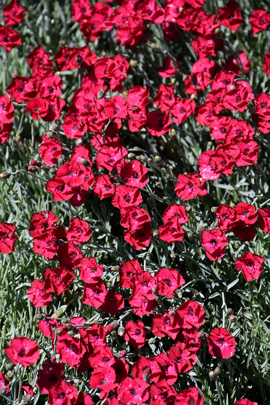 Mountain Frost™ Red Garnet Pinks is smothered in stunning fragrant ruby-red frilly flowers at the ends of the stems from late spring to early fall. The flowers are excellent for cutting. Its attractive narrow leaves remain grayish green in colour with hints of silvery blue throughout the year.