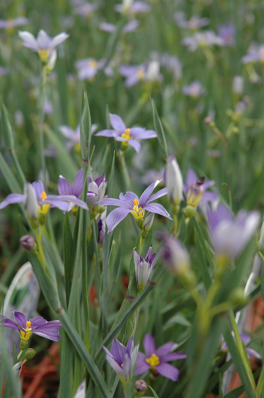 Blue Note Blue-Eyed Grass will grow to be about 14 inches tall at maturity, with a spread of 12 inches. When grown in masses or used as a bedding plant, individual plants should be spaced approximately 12 inches apart. Its foliage tends to remain dense right to the ground, not requiring facer plants in front. It grows at a medium rate, and under ideal conditions can be expected to live for approximately 10 years. As an herbaceous perennial, this plant will usually die back to the crown each winter, and will regrow from the base each spring. Be careful not to disturb the crown in late winter when it may not be readily seen!