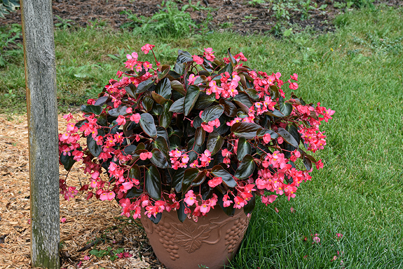 Dragon Wing® Pink Bronze Leaf Begonia is a fine choice for the garden, but it is also a good selection for planting in outdoor containers and hanging baskets. It is often used as a 'filler' in the 'spiller-thriller-filler' container combination, providing a mass of flowers and foliage against which the thriller plants stand out. Note that when growing plants in outdoor containers and baskets, they may require more frequent waterings than they would in the yard or garden.