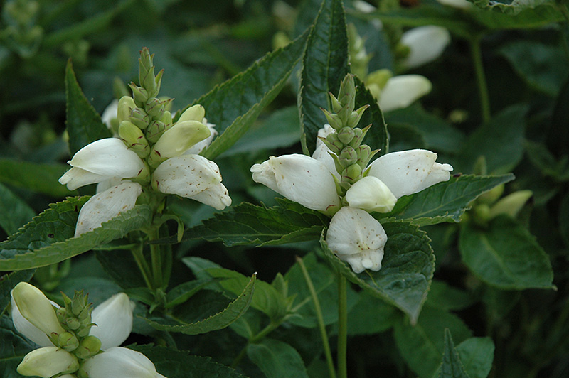White Turtlehead has masses of beautiful white hooded flowers at the ends of the stems from late summer to mid fall, which are most effective when planted in groupings. The flowers are excellent for cutting. Its serrated pointy leaves remain dark green in colour throughout the season.